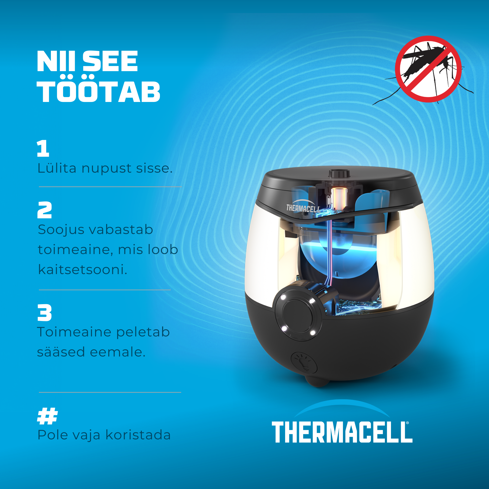 - Lihtsasti ühest nupust juhitav. Lülitage see sisse ... ja sääsed on kadunud!